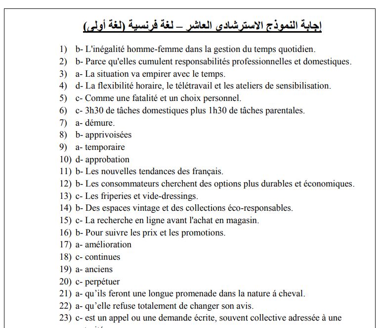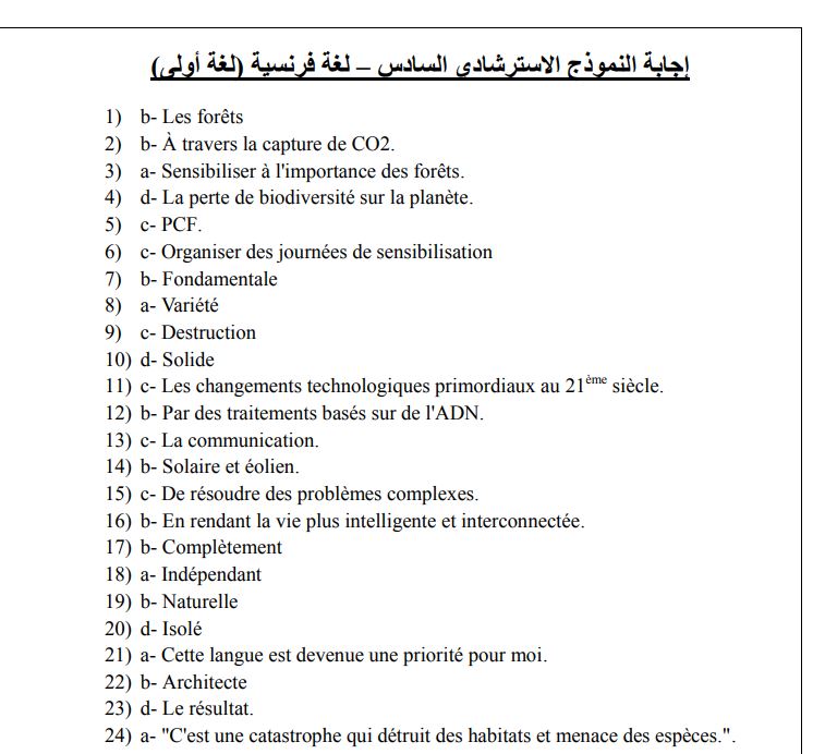 الثانوية العامة 2025.. بالاجابات النماذج الاسترشادية من 6 الى 10 في اللغة الفرنسية