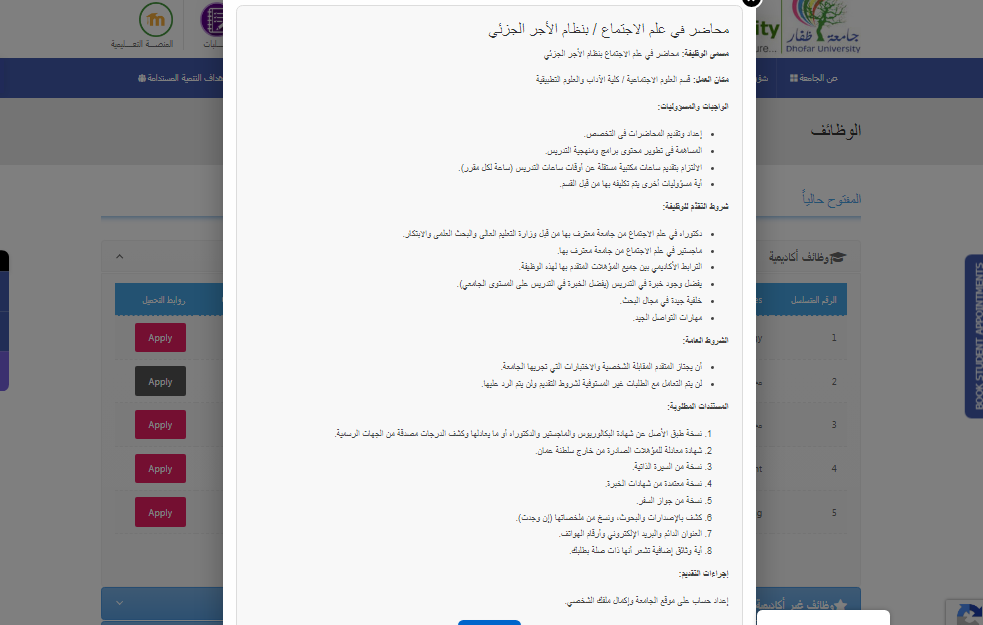 خطوات التقديم على وظيفة محاضر في علم الاجتماع بجامعة ظفار: