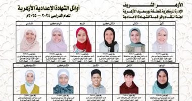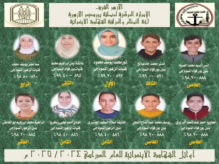 بوابه الازهر الالكترونيه .. بالأسماء أوائل الشهادتين الابتدائية والإعدادية الأزهرية فى بورسعيد
