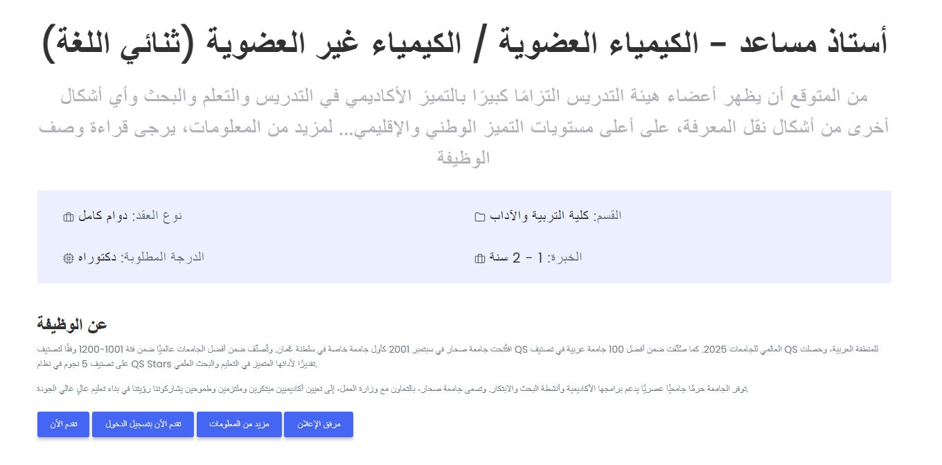 - وظائف شاغرة جامعة صحار