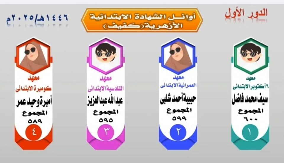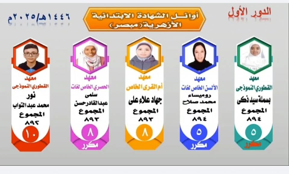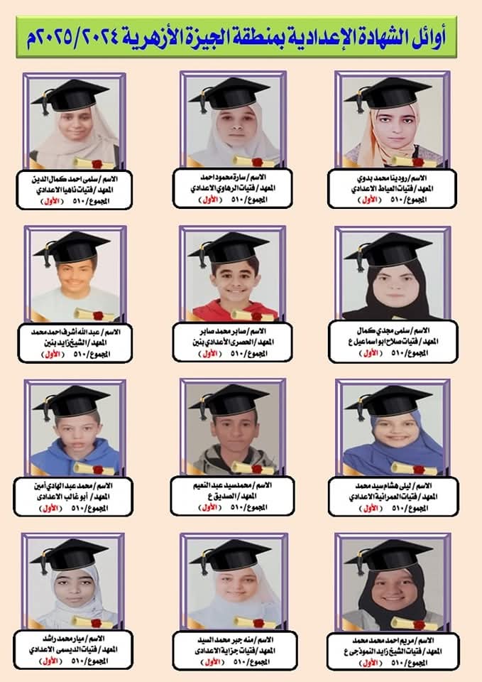 أوائل الشهادتين الابتدائية والإعدادية الأزهرية