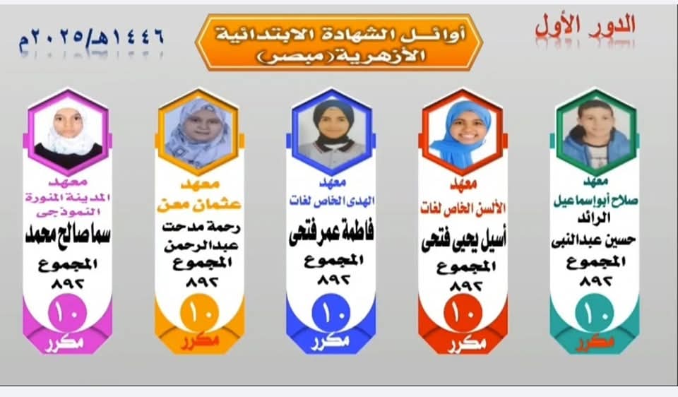 بالأسماء.. أوائل الشهادتين الابتدائية والإعدادية الأزهرية