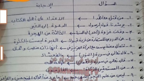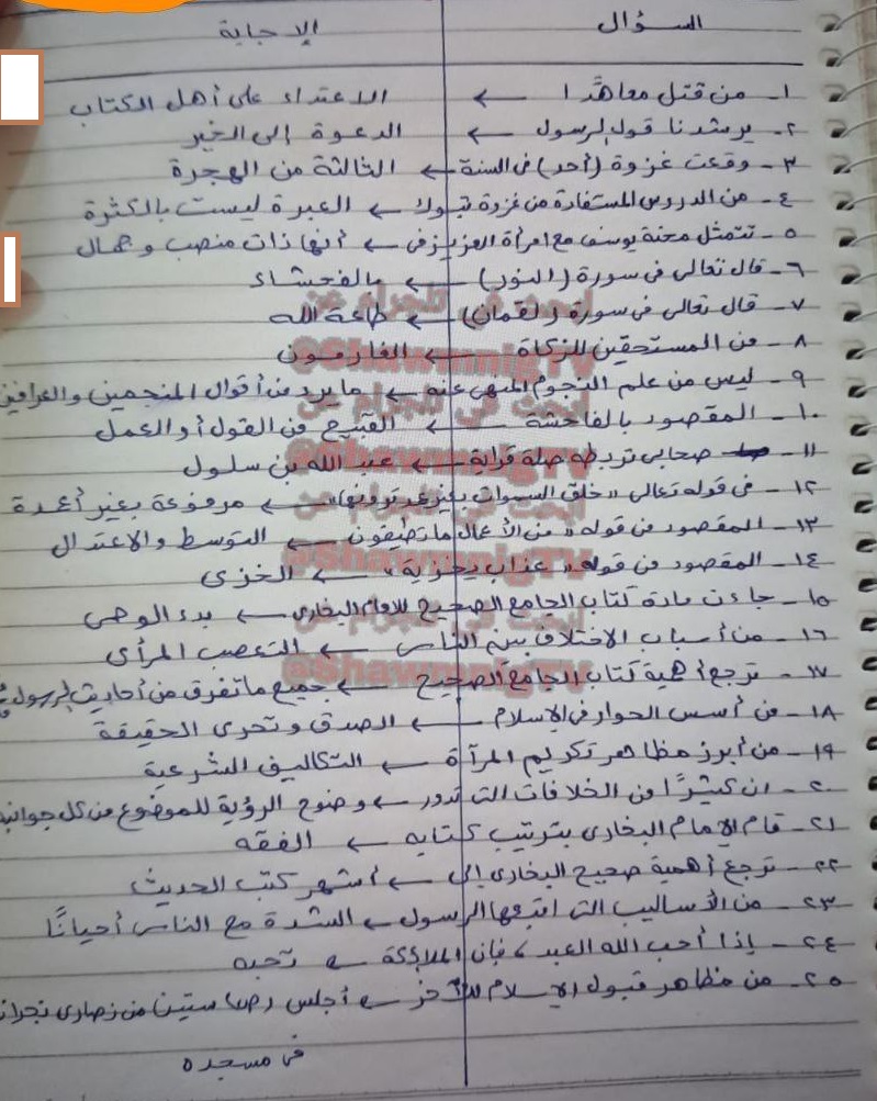 - حل أسئلة امتحان الدين ثانوية عامة