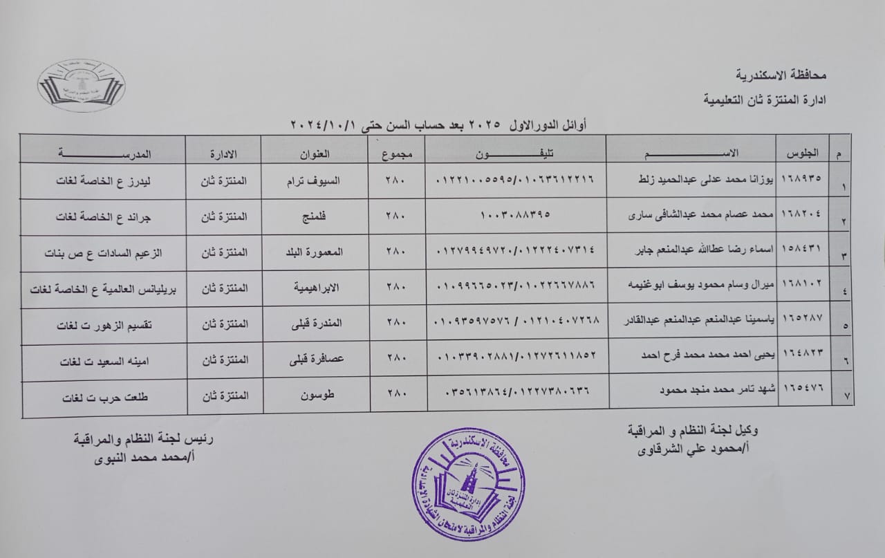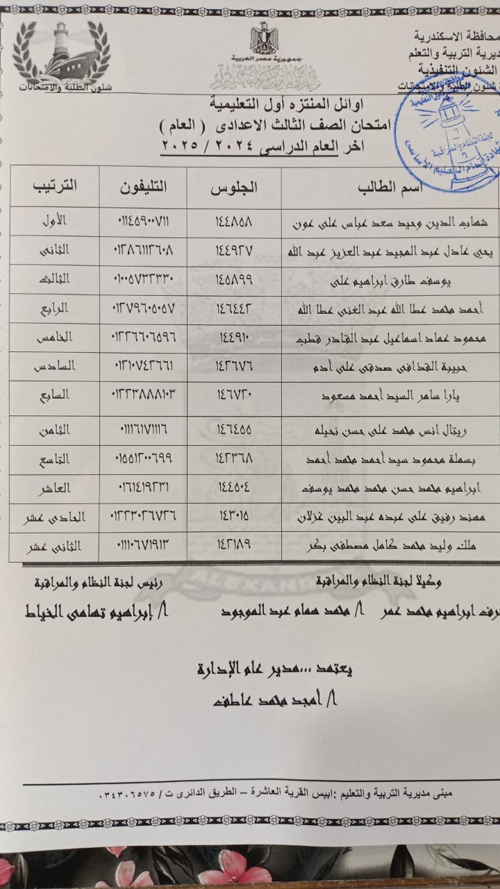 ننشر أسماء أوائل الشهادة الإعدادية بمحافظة الإسكندرية 2025