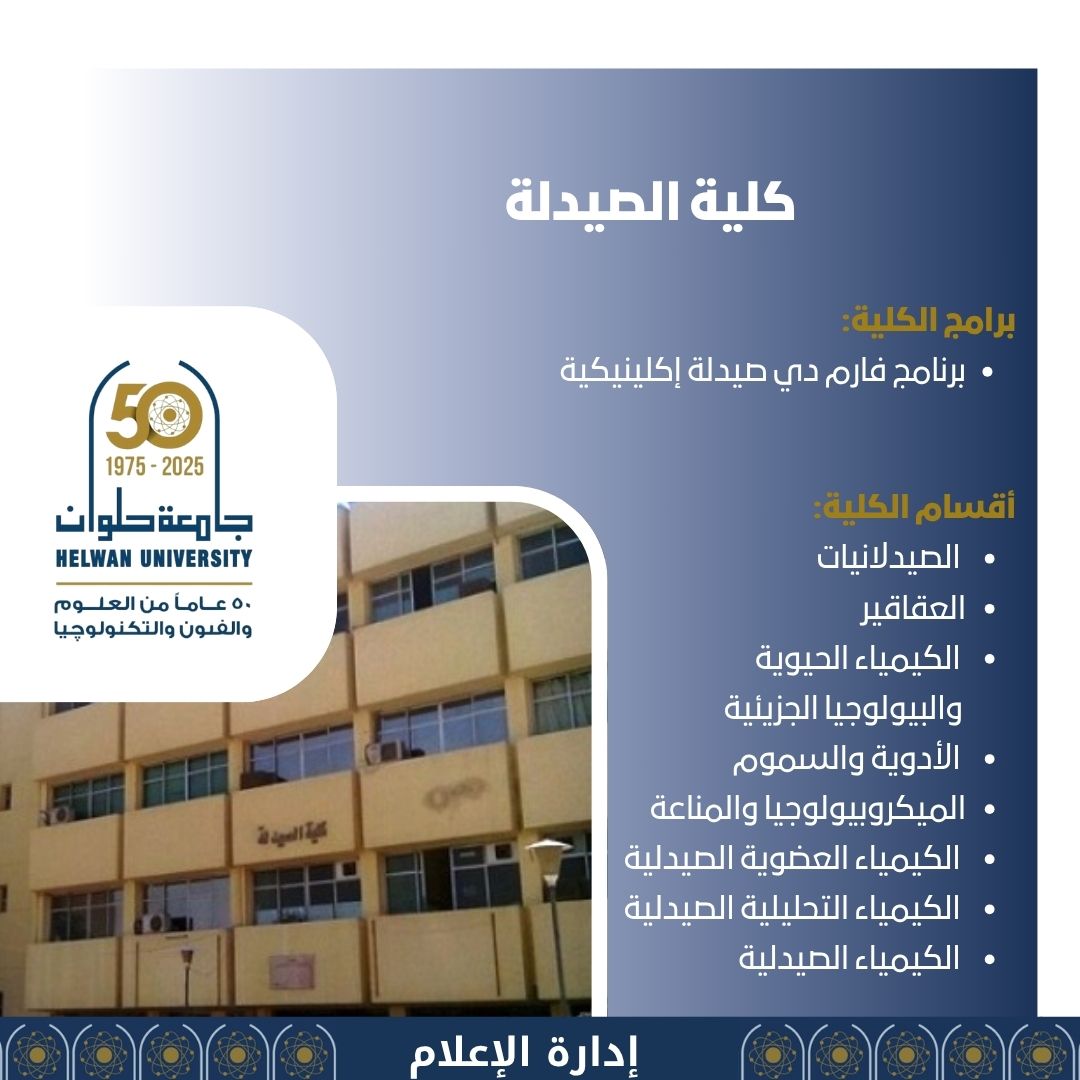 ليست كلية الصيدلة بجامعة حلوان مجرد مؤسسة تعليمية، بل هي مركز تميز وإبداع، يعمل على تمكين طلابه من قيادة مستقبل الرعاية الصحية في مصر والمنطقة، من خلال العلم، والبحث، والتطبيق العملي المتقدم.