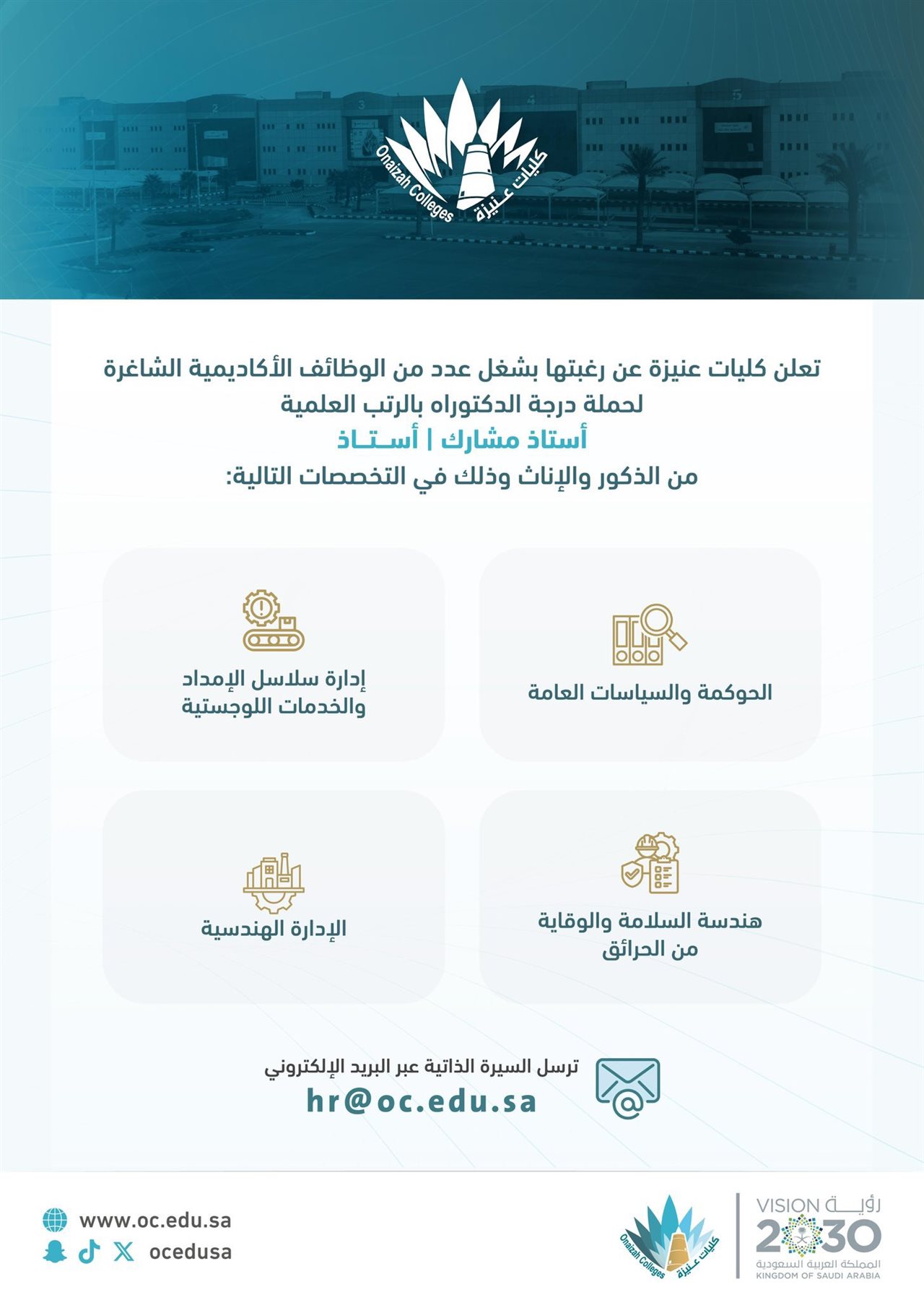 - وظائف شاغرة كليات عنيزة