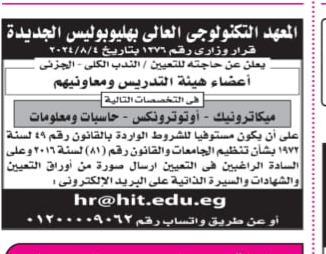 - وظائف المعهد التكنولوجي العالي بهليوبوليس الجديدة