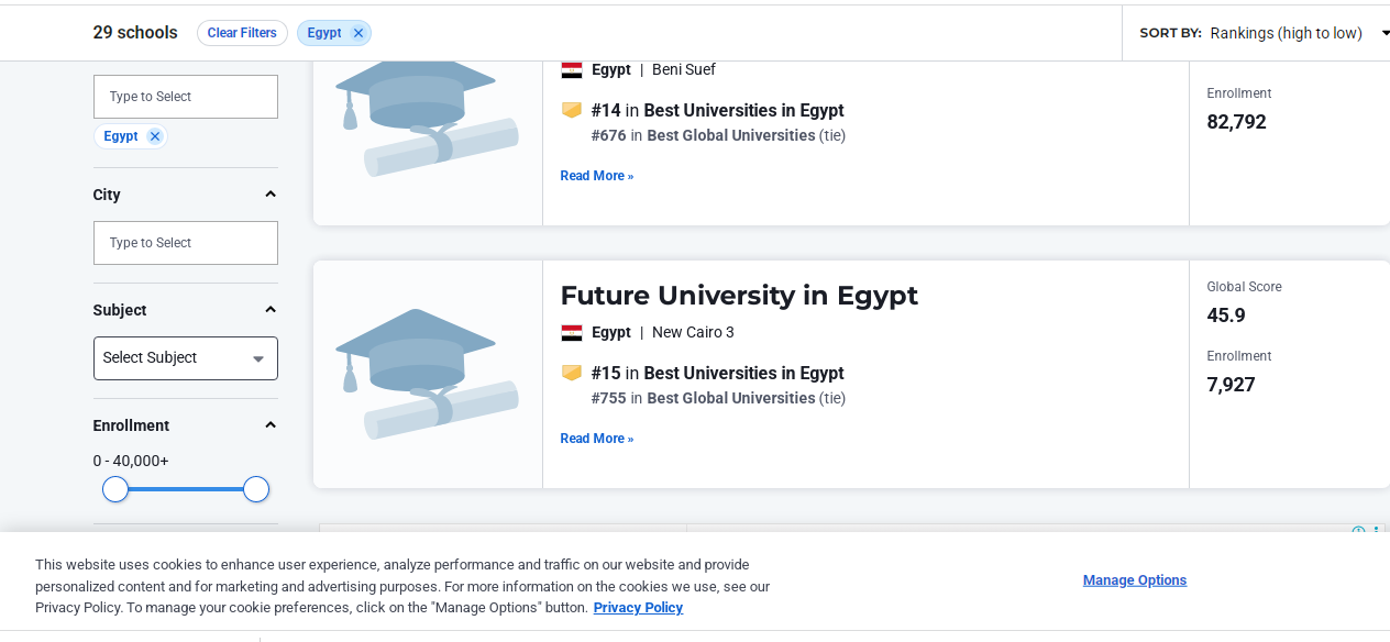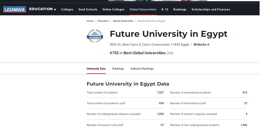 جامعة المستقبل نمبر وان على مستوى الجامعات المصرية الخاصة فى تصنيف U.S. News الأمريكي