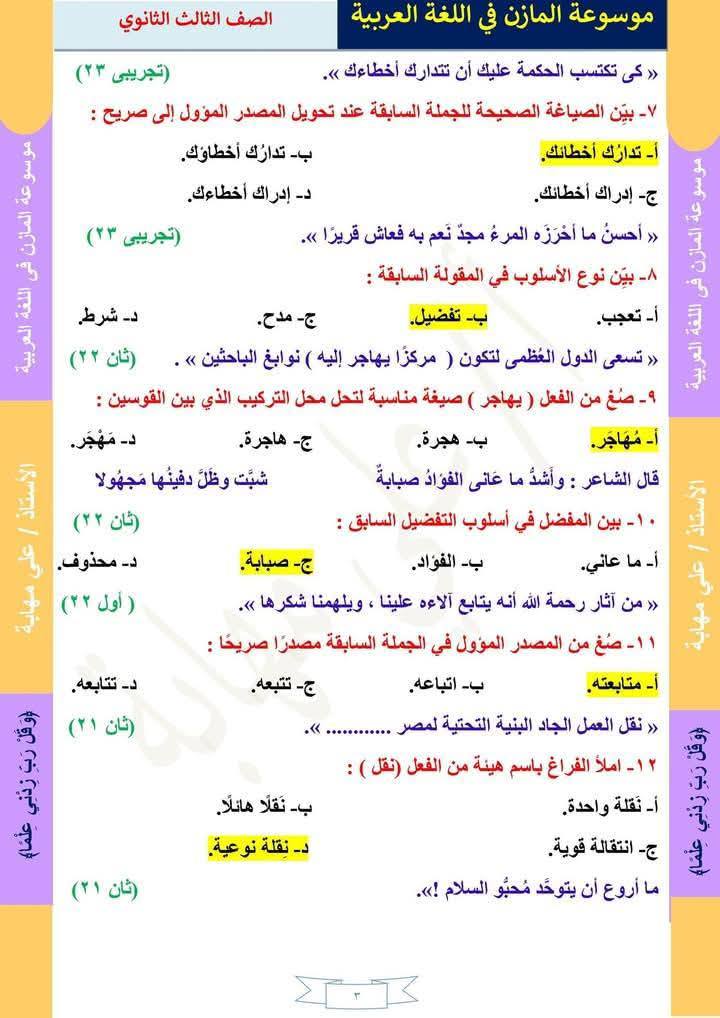 - النحو مراجعات نهائية الصف الثالث الثانوي