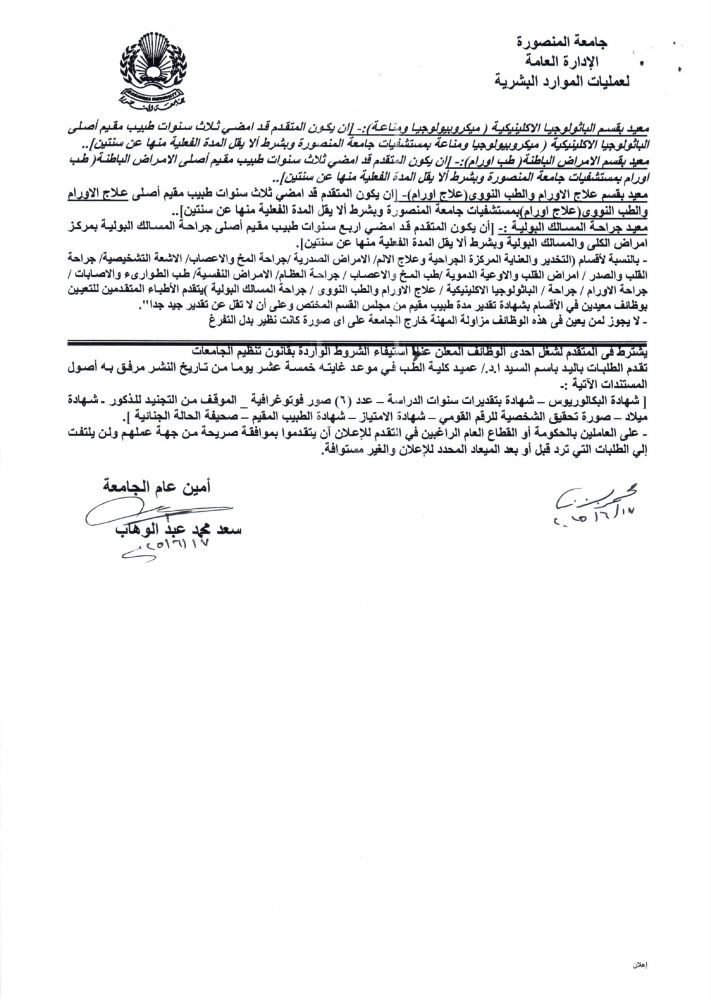 - أخبار وظائف جامعة المنصورة