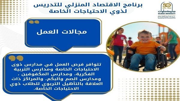 أعلنت جامعة حلوان عن إطلاق برنامج إعداد معلمي الاقتصاد المنزلي لذوي الاحتياجات الخاصة بكلية الاقتصاد المنزلي، وهو أحد البرامج النوعية المتميزة التي تستهدف تأهيل كوادر تعليمية قادرة على التعامل مع فئات ذوي الإعاقة والدمج التربوي، وذلك في إطار جهودها الدائمة لدعم خطط تنسيق الجامعات وتقديم برامج أكاديمية متخصصة.