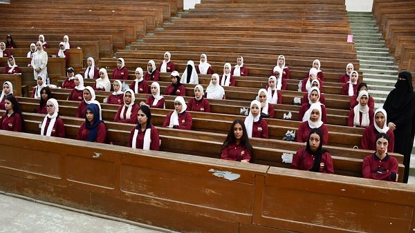 جامعة حلوان تدعم الانتماء الوطني بتوزيع تيشيرتات التربية الوطنية على الطالبات