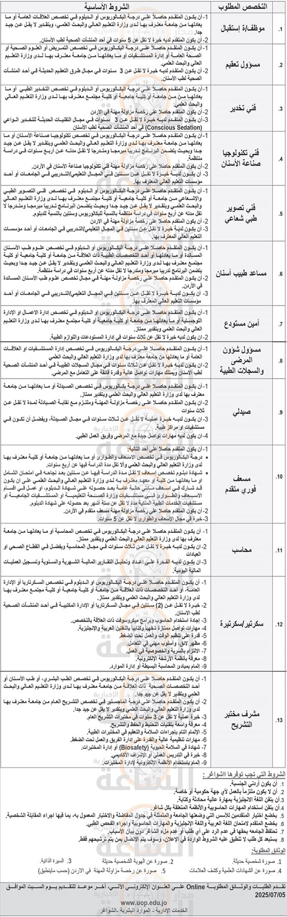 - أخبار وظائف جامعة البترا اليوم