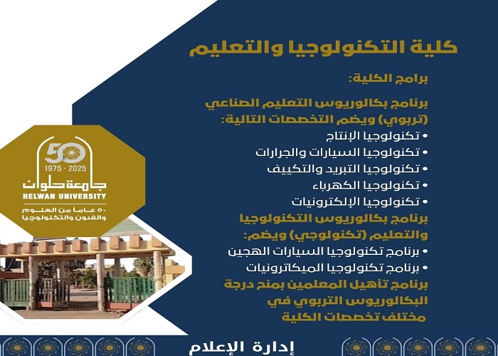 فـ كلية التكنولوجيا والتعليم بجامعة حلوان هي خيارك الأمثل.