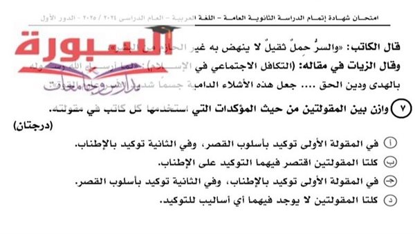 ننفرد بنشر نموذج الاجابة الرسمي في امتحان اللغة العربية لـ الثانوية العامة 2025.. وتوزيع الدرجات