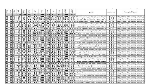 الدرجات النهائية لـ الشهادة الاعدادية