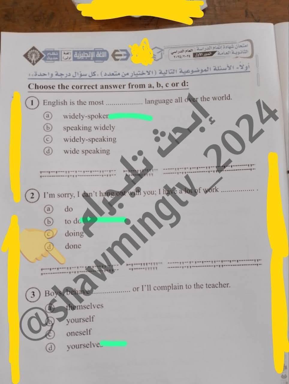 - امتحان اللغة الانجليزية 2025