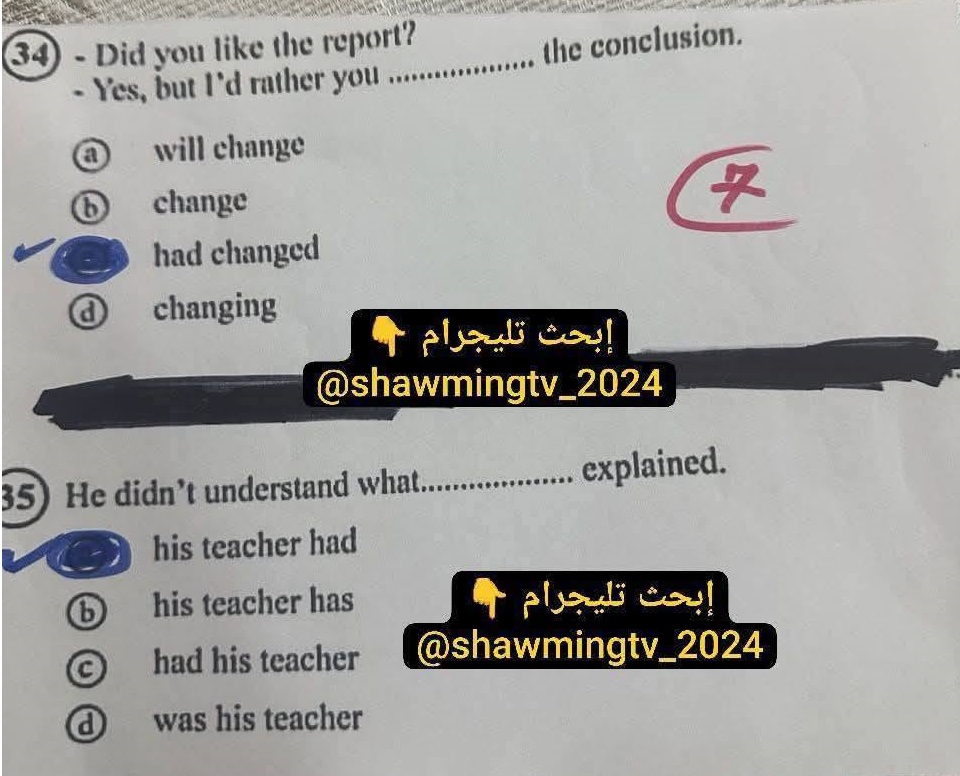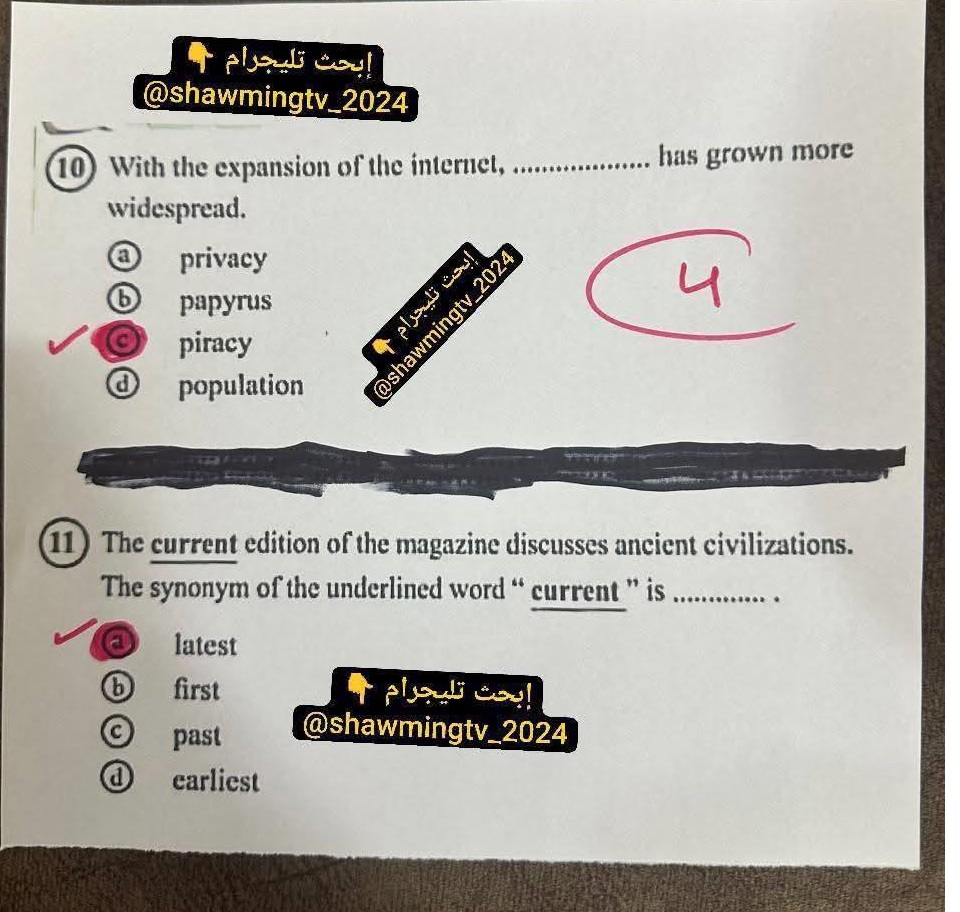 اسئلة امتحان آخر العام مادة اللغة الإنجليزية وإجاباتها