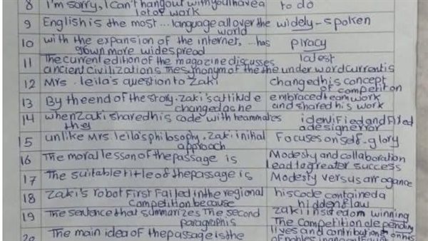 نموذج الاجابة الرسمي في امتحان اللغة الانجليزية لـ الثانوية العامة.. وفي نفس السياق.. أفاد المراقبون بأن الأجواء داخل لجان امتحانات مادة اللغة الإنجليزية لطلاب الثانوية العامة، اتسمت بالهدوء والانضباط، مما ساهم في توفير بيئة مناسبة ساعدت الطلاب على التركيز. وقد خرجت الغالبية بانطباعات إيجابية تجاه مستوى الأسئلة، خاصة الطلاب من ذوي المستوى العلمي المتوسط، الذين وجدوا الامتحان مناسبًا لقدراتهم.