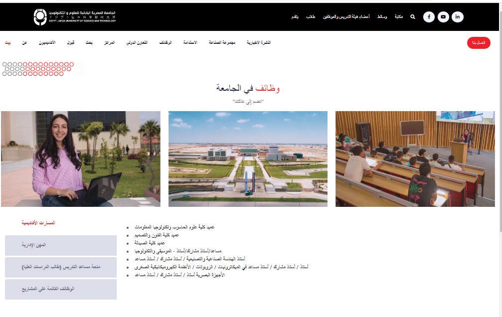 الوظائف الأكاديمية المتاحة في الجامعة المصرية اليابانية