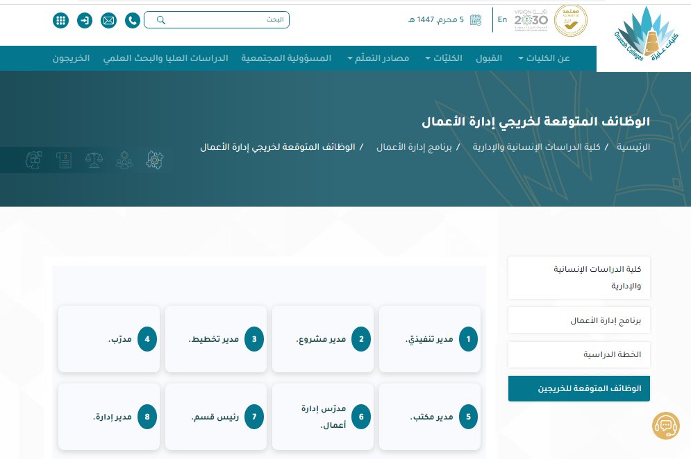 التخصصات المطلوبة في وظائف كليات عنيزة