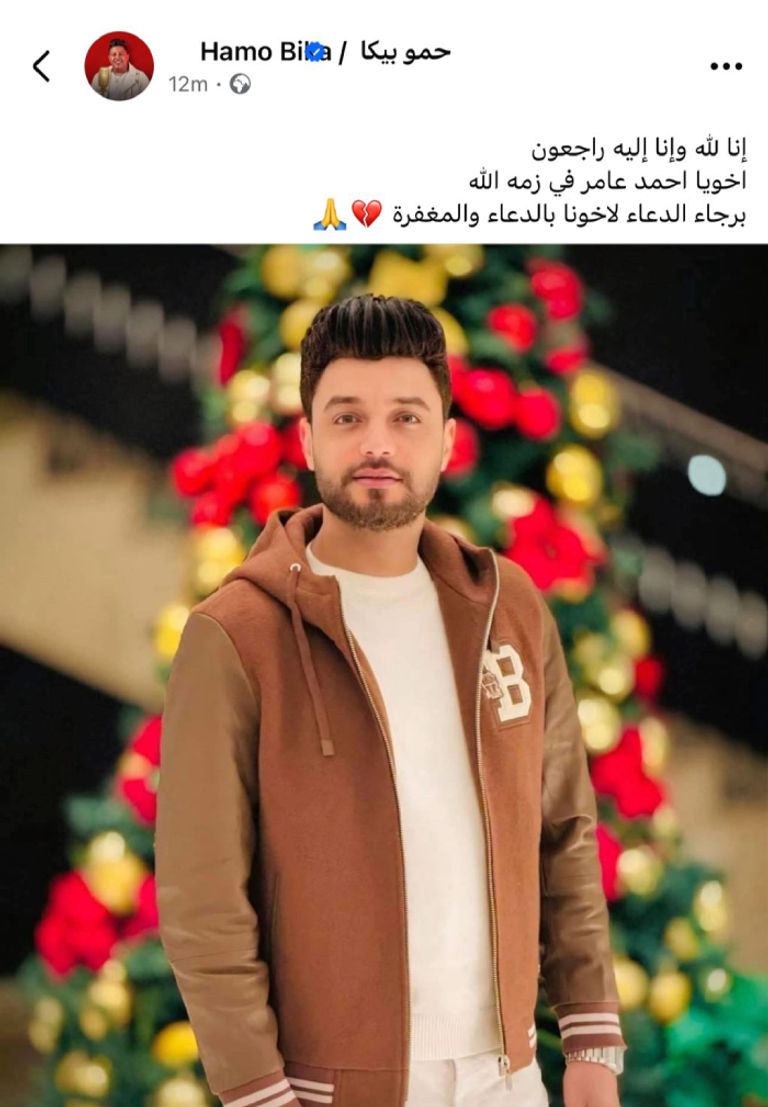 أضاف حمو بيكا عبر صفحته الشخصية: «إنا لله وإنا إليه راجعون، أخي أحمد عامر في ذمة الله، نسألكم الدعاء له بالرحمة والمغفرة».