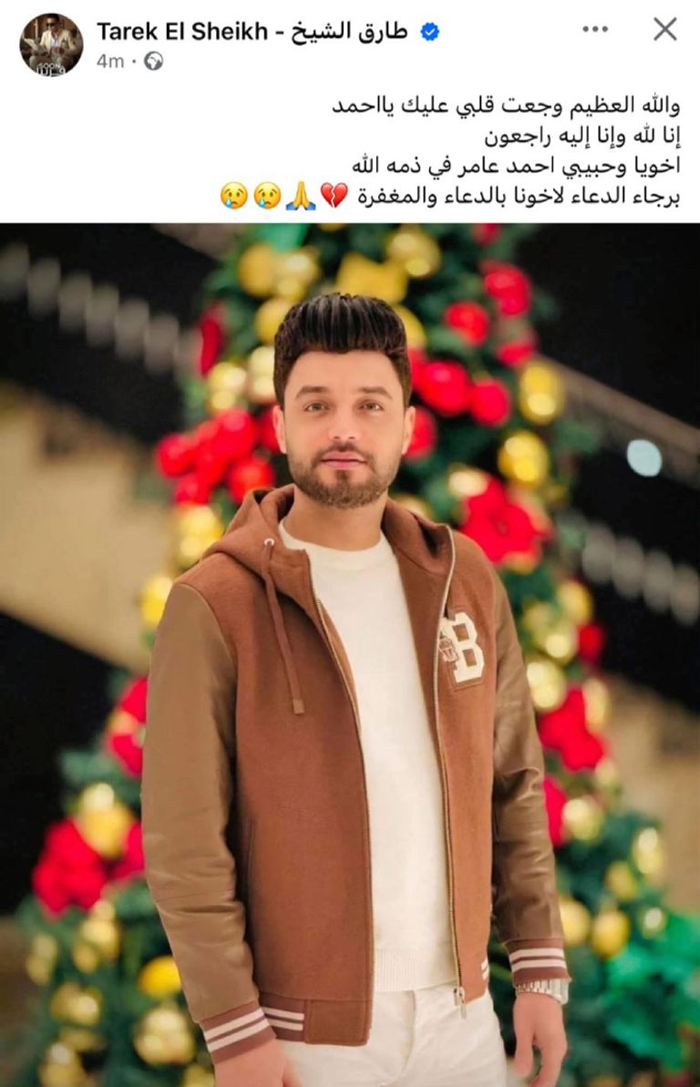 كما كتب المطرب طارق الشيخ: «والله العظيم وجعت قلبي عليك يا أحمد، إنا لله وإنا إليه راجعون، أخي وحبيبي أحمد عامر في ذمة الله، برجاء الدعاء له بالرحمة والمغفرة».