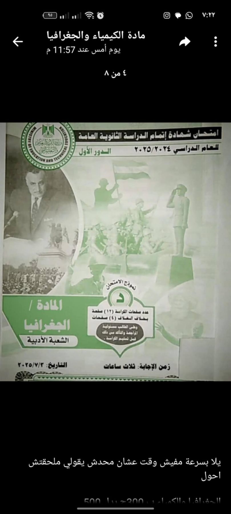 نشرت صفحة شاومينج عبر وسائل التواصل الاجتماعي صورا تزعم فيها تسريب امتحان الكيمياء للثانوية العامة 2025 من يوم أمس الاثنين عبر ما يسمى جروبات سرية وعن طريق جروب على الواتساب وتليجرام قبل الساعة 7 صباحا قبل انطلاق لجان امتحانات الثانوية العامة 2025.