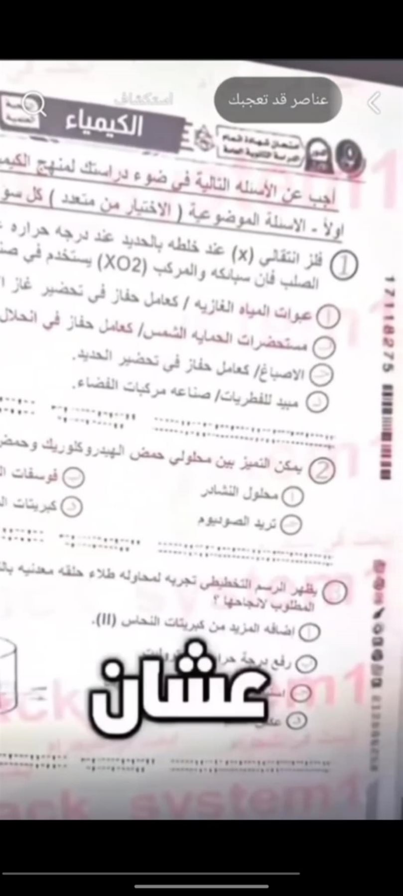 - تسريب امتحان الكيمياء للثانوية العامة