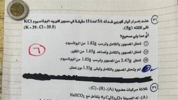 نموذج حل امتحان الكيمياء ثانوية عامة 2025