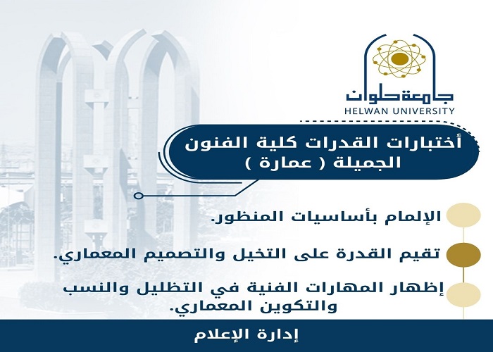تهدف اختبارات القدرات التي تنظمها كلية الفنون الجميلة جامعة حلوان إلى قياس استعداد الطلاب للالتحاق بـقسم العمارة من خلال: