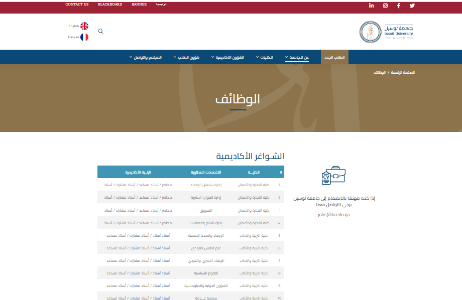 للتقديم في وظيفة جامعة لوسيل عبر الموقع الرسمي اضغط هنا