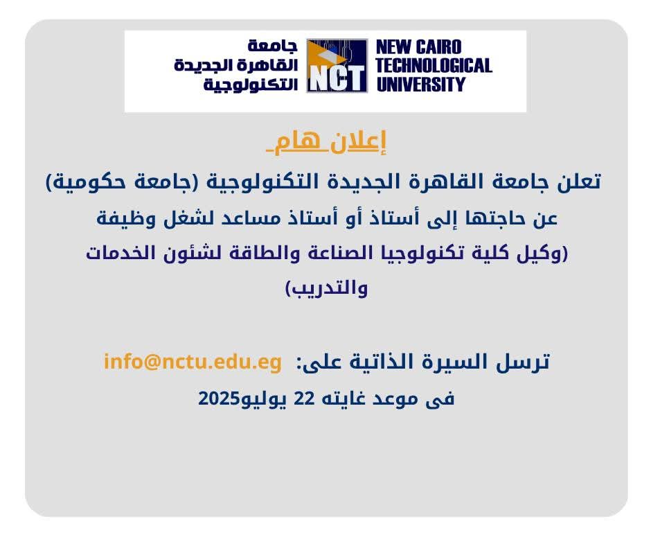 - اكاديميون وظائف جامعة القاهرة الجديدة التكنولوجية