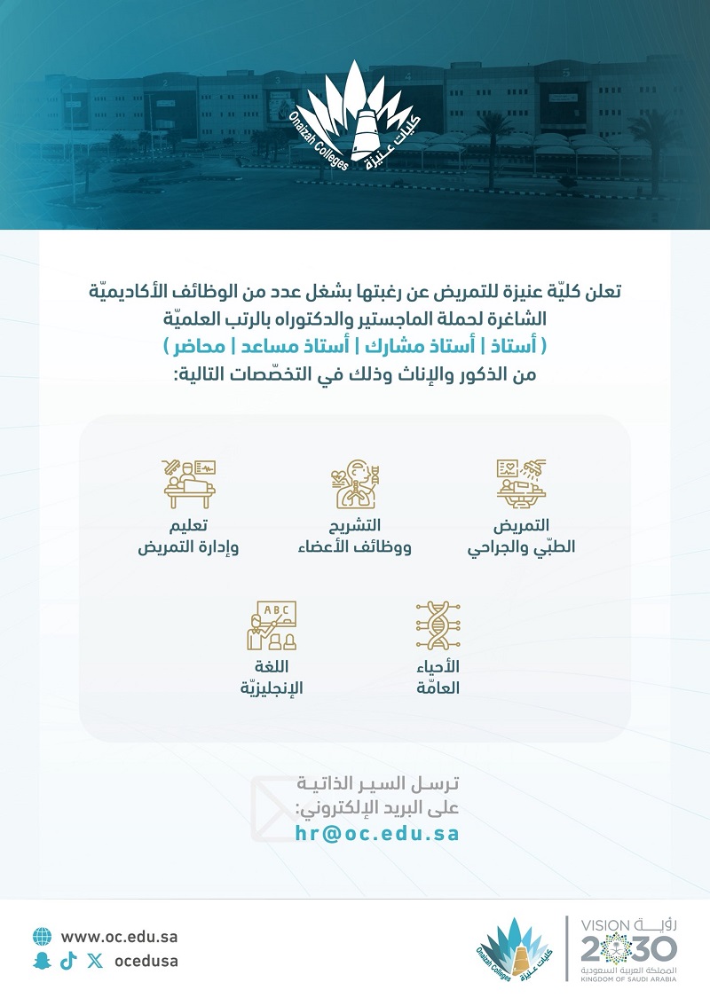 - أعضاء هيئة التدريس وظائف كليات عنيزة