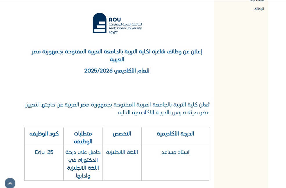 التخصص المطلوب في وظيفة جامعة الجامعة العربية المفتوحة