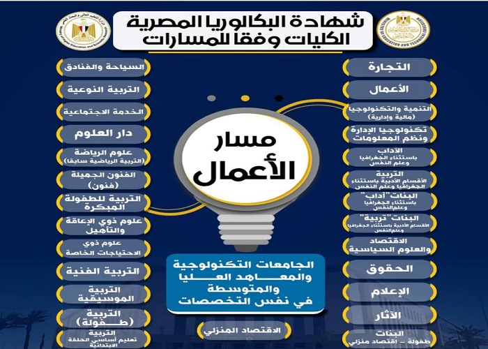 الكليات المتاحة لمسار الأعمال وفق شهادة البكالوريا المصرية