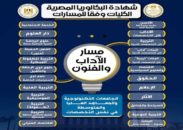 ننشر الكليات المتاحة والمواد الدراسية لمسار الآداب والفنون وفق نظام البكالوريا المصرية الجديد