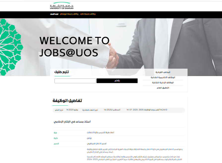 لمطالعة نص إعلان وظيفة جامعة الشارقة 2025 والتقديم عبر الرابط الرسمي سجل هنا