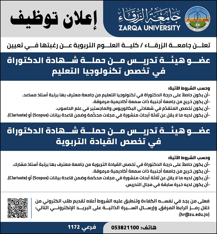 - فرص عمل جامعة الزرقاء