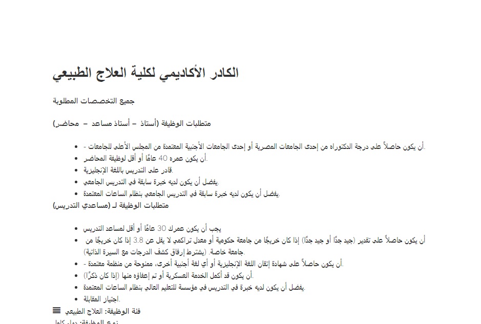الشروط العامة لوظائف أعضاء هيئة التدريس بكلية العلاج الطبيعي
