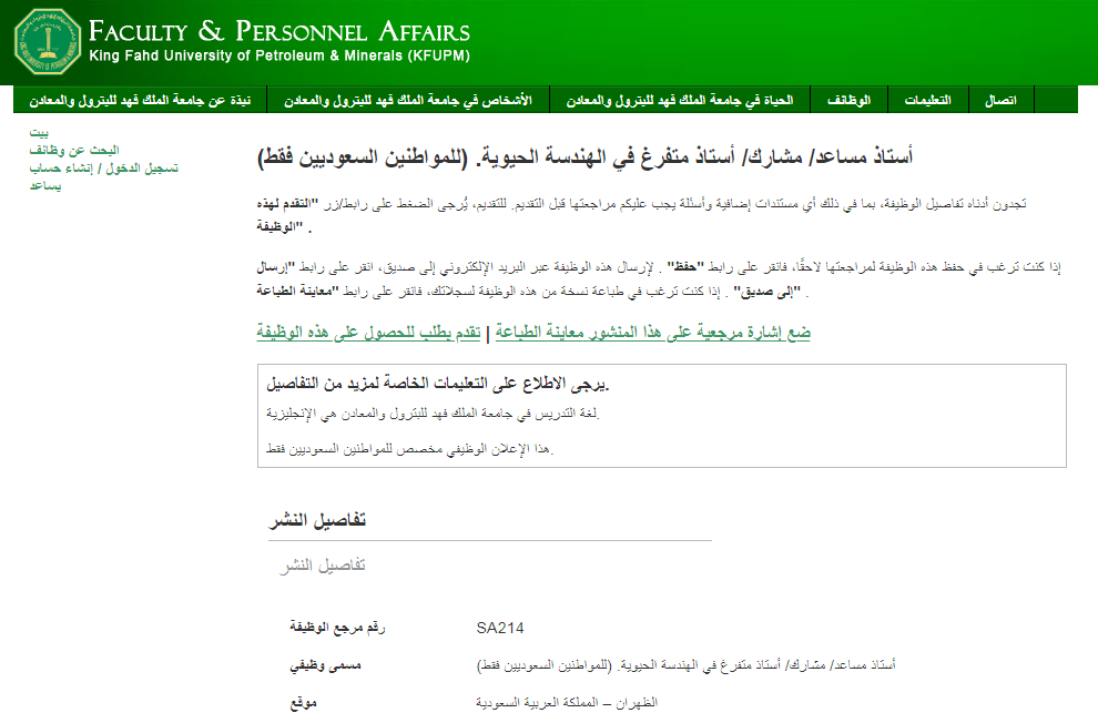 لمطالعة نص إعلان وظيفة جامعة الملك فهد للبترول والمعادن والتقديم اضغط هنا