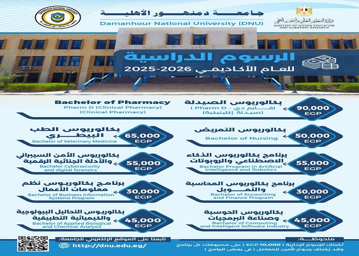 ننشر المصروفات الدراسية بجامعة دمنهور الأهلية