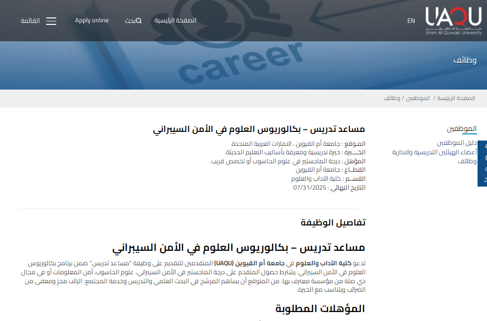 إعلان وظيفة جامعة أم القيوين