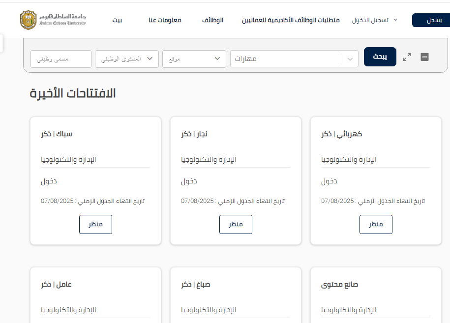 الوظائف المطلوبة في جامعة السلطان قابوس: