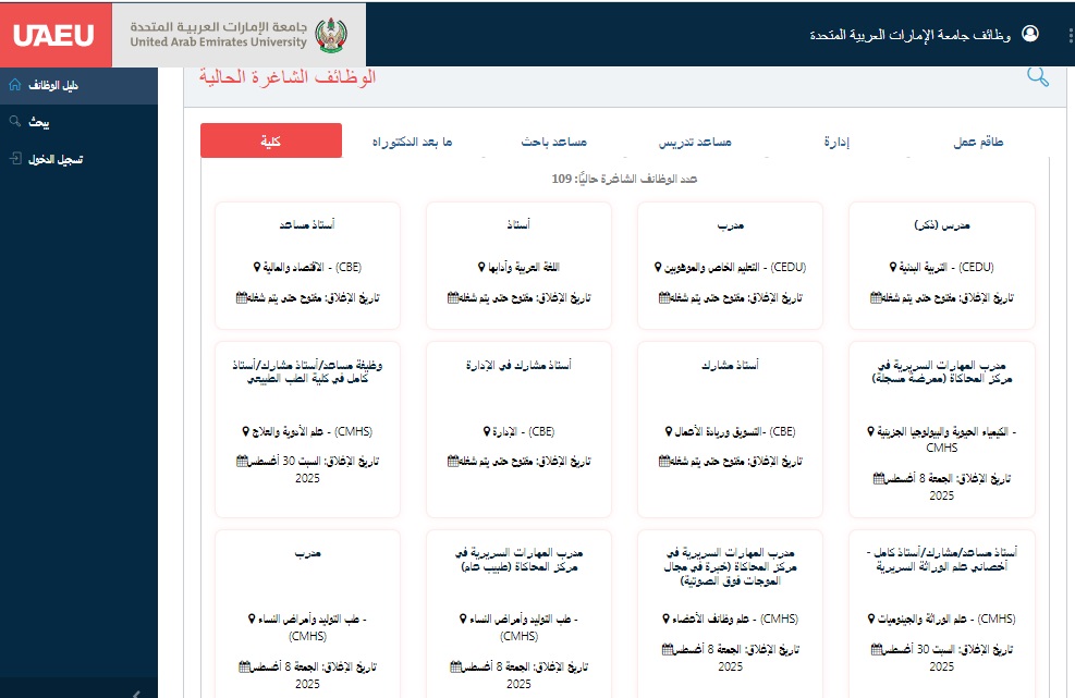 وظيفة جامعة.. جامعة الإمارات تعلن عن 109 وظيفة لأعضاء هيئة التدريس في تخصصات متنوعة.. قدم الآن