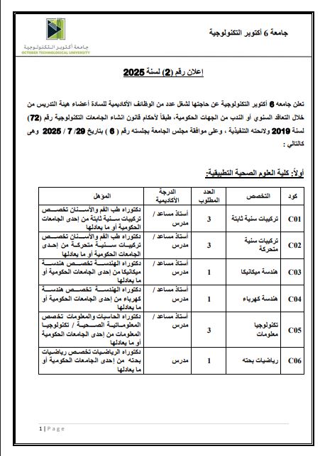 - وظائف شاغرة جامعة 6 أكتوبر التكنولوجية