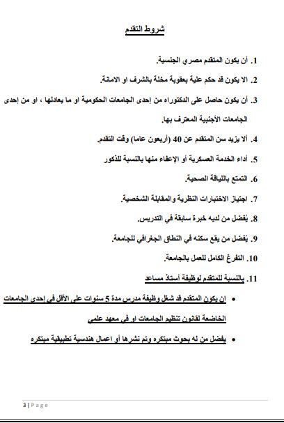 3- أن يكون حاصل على الدكتوراه من إحدى الجامعات الحكومية أو ما يعادلها، أو من إحدى الجامعات الأجنبية المعترف بها.