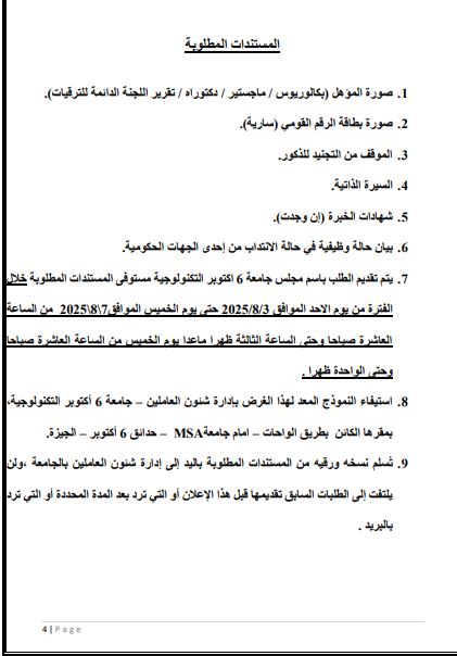 المستندات المطلوبة في وظائف جامعة 6 أكتوبر التكنولوجية