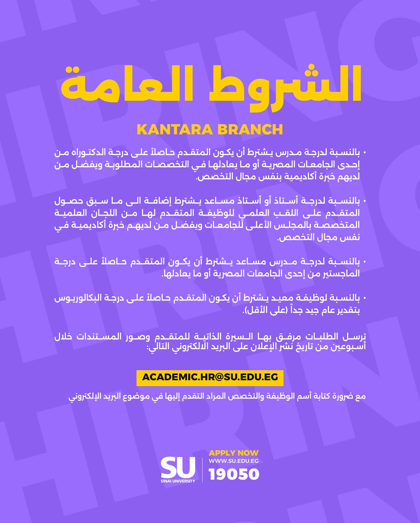 - أخبار وظائف جامعة سيناء اليوم