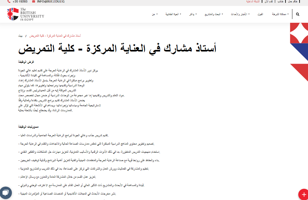 إعلان وظيفة جامعة البريطانية في مصر